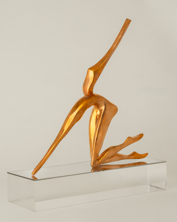 Materiality: Lost wax bronze casting, polished finish, on an acrylic base featuring a mirrored top.