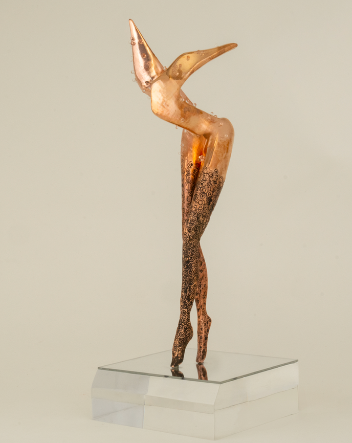 Materiality: Lost wax bronze casting, polished finish, on an acrylic base featuring a mirrored top.